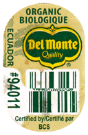 Aufkleber Del Monte® Quality #94011 Organic Biologique Ecuador Certified by / Certifié par BCS [EAN-Code]