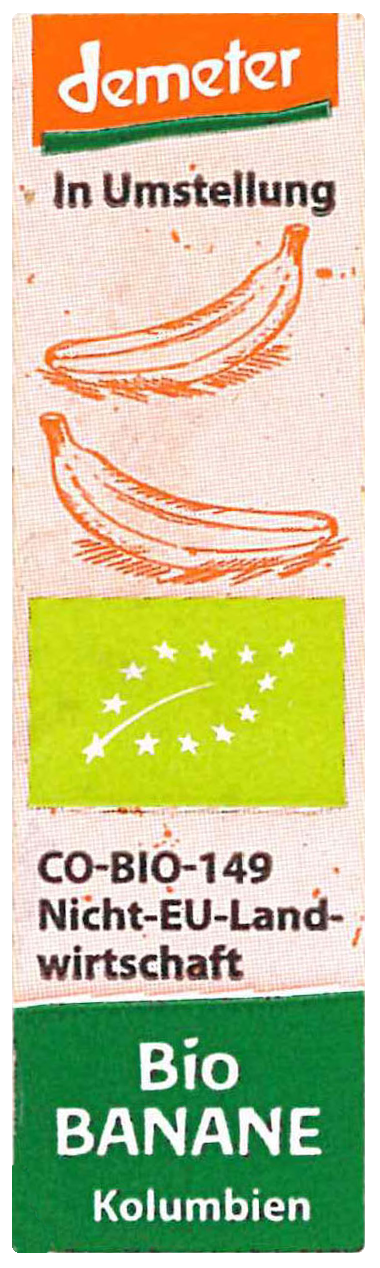 Aufkleber Demeter in Umstellung CO-BIO-149 Nicht EU-Landwirtschaft Bio Banane Kolumbien
