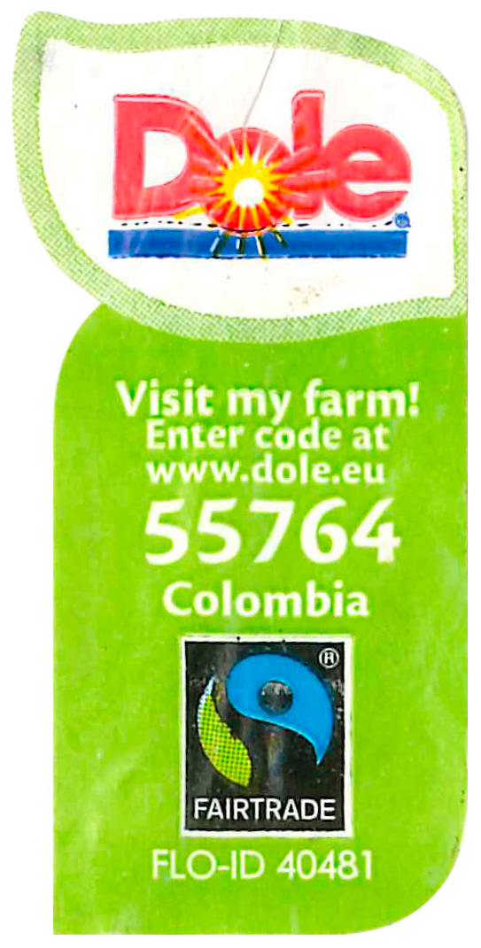 Aufkleber Dole® Colombia Visit my Farm! Enter Code at www.dole.eu Fairtrade® FLO-ID 40481 55319