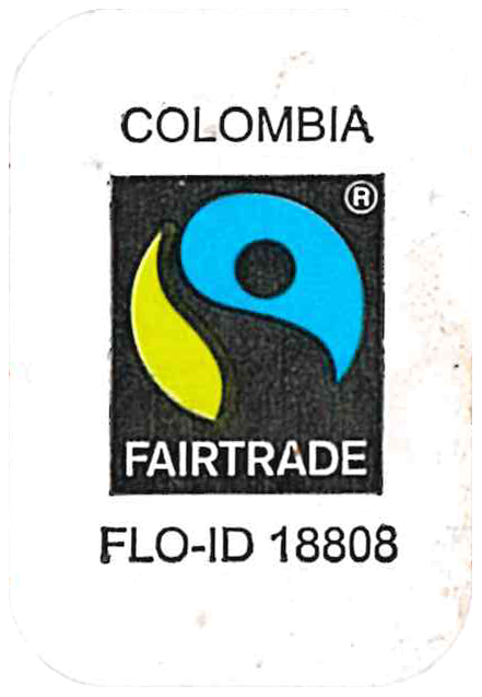 Aufkleber Fairtrade® Colombia FLO-ID 45332. |